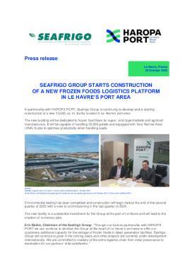 • Seafrigo group starts construction of a new frozen foods logistics platform in Le Havre's port area