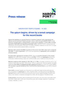 Against the backdrop of a general decline in maritime container traffic impacted by the national social movement linked to pension reform, traffic through HAROPA PORT is now showing a gradual upturn, underpinned by a good cereal campaign (*) with 8.5Mt of cereals exported in 2022-2023 and expanding passenger traffic. HAROPA PORT’s market share was maintained in the first quarter of the year in a context marked by a downturn of over 12% in Europe in the first months where container traffic is concerned.