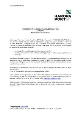 Avis d’attribution des autorisations domaniales : Avis de convention d'occupation du domaine public n°23/029