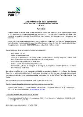• Avis dattribution de la convention d'occupation du domaine public fluvial n°4129