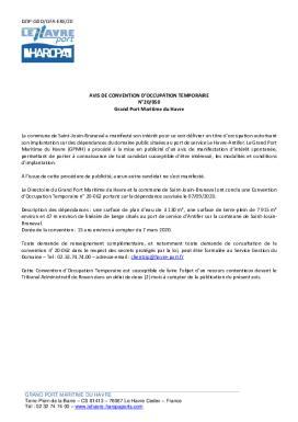 • AVIS DE CONVENTION DOCCUPATION TEMPORAIRE N°20/050 Grand Port Maritime du Havre