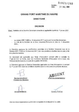 Décisions règlementaires : DIR 20/293 - Validation de la doctrine domaniale amendée et applicable à partir du &er janvier 2021