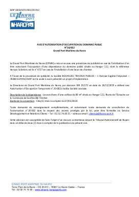 • n°20-052 - Avis d'autorisation d'occupation du domaine public - Grand Port Maritime du Havre