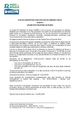• N°20/015 - Avis de convention doccupation du domaine public - GRAND PORT MARITIME DE ROUEN