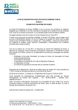 • N°20/014 - Avis de convention doccupation du domaine public - GRAND PORT MARITIME DE ROUEN
