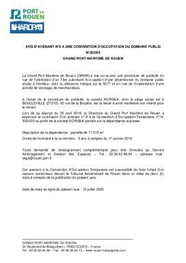 • N°20/004 - Avis de convention doccupation du domaine public - GRAND PORT MARITIME DE ROUEN - Avis avenant n°8