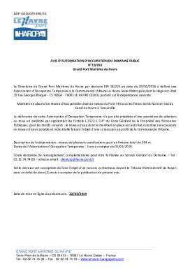 • AVIS DAUTORISATION DOCCUPATION DU DOMAINE PUBLIC - N°19/010 Grand Port Maritime du Havre