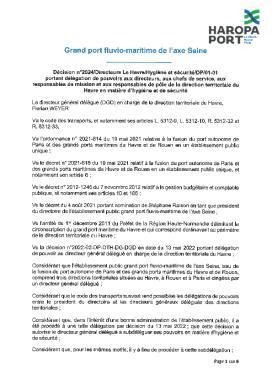 • Décision n°2024/Directeurs Le Havre/Hygiène et sécurité/DP/01-01 portant délégation de pouvoirs aux directeurs, aux chefs de service, aux responsables de mission et aux responsables de pôle de la direction territoriale du Havre