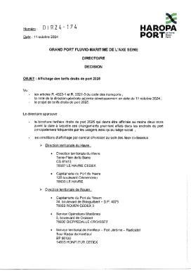 Décisions règlementaires : Affichage des tarifs droits de port 2025 du Grand port fluvio-maritime de l'axe Seine