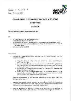 Décisions règlementaires : DIR 24-217_Approbation des tarifs domaniaux 2025