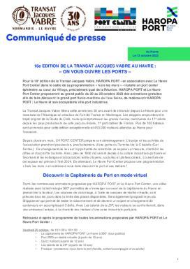 Pour la 16ᵉ édition de la Transat Jacques Vabre, HAROPA PORT - en association avec Le Havre Port Center - installe un port center éphémère au cœur du Village. Ils proposeront au grand public du 20 au 28 octobre 2023 des animations gratuites afin de faire découvrir le grand port fluvio-maritime de l’axe Seine.