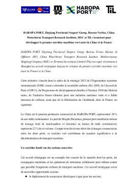 Communiqué de presse - Partenariat HAROPA PORT Ningbo-Zhoushan pour un corridor vert