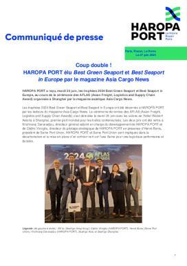 Événement : Coup double ! HAROPA PORT élu Best Green Seaport et Best Seaport in Europe par le magazine Asia Cargo News