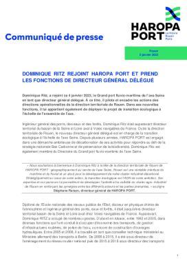 Vie de l'entreprise : Dominique Ritz Rejoint HAROPA PORT