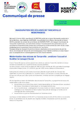 Communiqué de presse - Inauguration des écluses de Tancarville modernisées