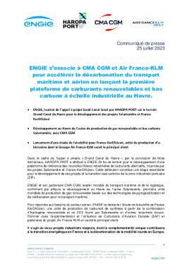 Dans le cadre de l’appel à projets « Grand Canal du Havre », par la conclusion de titres domaniaux, HAROPA PART a attribué à ENGIE 24 ha de terrain pour le développement d’une plateforme de référence des nouvelles filières industrielles de carburants alternatifs, incarnée par les projets Salamandre et France KerEAUzen. Cette attribution constitue une étape essentielle pour le développement de ces projets et la transition bas carbone de la zone industrialo-portuaire (ZIP).