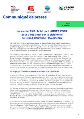 Développement : Le sucrier AKS choisi par HAROPA PORT pour s'implanter sur la plateforme de Grand-Couronne