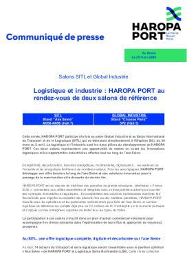 Communiqué de presse - Logistique et industrie : HAROPA PORT au rendez-vous de deux salons de référence