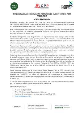 JOP 2024, Croisière : PARIS je t’aime, la communauté portuaire de PARIS et HAROPA PORT présentent « TAXI SEINE PARIS »