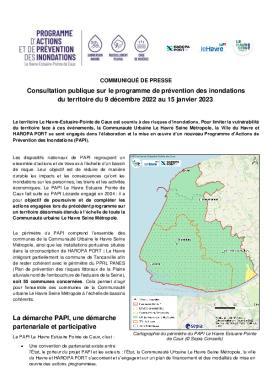 Le territoire Le Havre-Estuaire-Pointe de Caux est soumis à des risques d’inondations. Pour limiter la vulnérabilité du territoire face à ces événements, la Communauté Urbaine Le Havre Seine Métropole, la Ville du Havre et HAROPA PORT se sont engagés dans l’élaboration et la mise en œuvre d’un nouveau Programme d’Actions de Prévention des Inondations (PAPI).