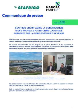 Seafrigo Group poursuit son développement et lance la construction d’une nouvelle plateforme de 13000m² située sur la zone portuaire havraise en partenariat avec HAROPA PORT. Ce nouveau bâtiment dédié aux flux surgelés de la grande distribution et des industriels de l’agroalimentaire pourra accueillir 35000 palettes et sera équipé de chariots pour allées étroites (VNA) permettant d’optimiser la productivité lors de la manutention des charges.