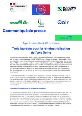 Communiqué de presse - Trois lauréats pour la réindustrialisation de l'axe Seine