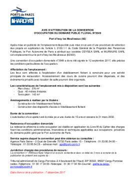 Avis dattribution de la convention doccupation du domaine public fluvial n°3549 - port dIssy-les-Moulineaux (92)