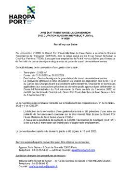 Avis d'attribution de la convention d'occupation du domaine public fluvial n°6089