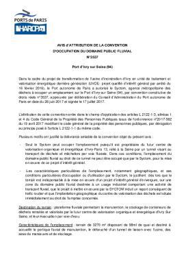 Avis dattribution de la convention doccupation temporaire (COT) du domaine public fluvial Syctom UVOE - Port dIvry sur Seine (94)