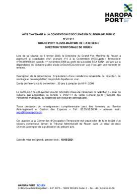 Avis d'avenant à la convention d'occupation du domaine public n°21-011 SEA TANK