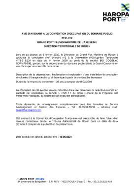 Avis d'avenant à la convention d'occupation du domaine public n°21-012 BIO COGELYO