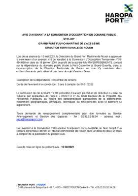 Avis d'avenant à la convention d'occupation du domaine public N°21-037 - Huber