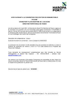 Avis d'avenant à la convention d'occupation du domaine public N°22-006 - Liberty mini club