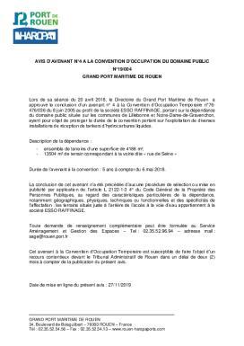 AVIS DAVENANT N°4 A LA CONVENTION DOCCUPATION DU DOMAINE PUBLIC - N°19/004 - GRAND PORT MARITIME DE ROUEN