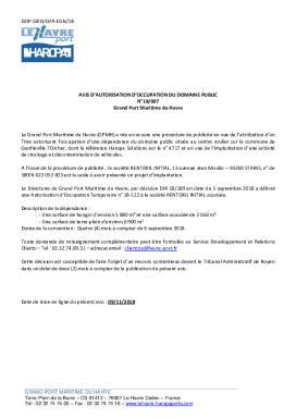 Avis d'occupation du domaine public N°18/007 - Grand Port Maritime du Havre