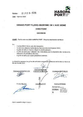 Décision 23-006 - Tarifs externes 2023 HAROPA PORT - Direction territoriale du Havre