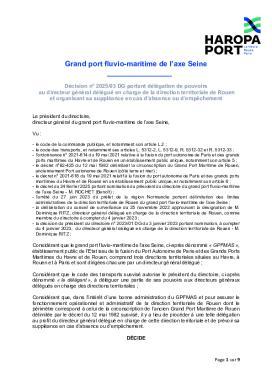 portant délégation de pouvoirs au directeur général délégué en charge de la direction territoriale de Rouen et organisant sa suppléance en cas d’absence ou d’empêchement