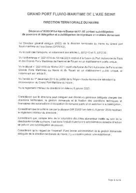 Décision n° 2025/DP/Le Havre/Domanial/01-02 portant subdélégation de pouvoirs et délégation et subdélégation de signature en matière domaniale