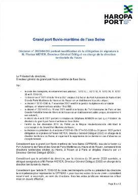 Décision n°2023/04 DG portant modification de la délégation de signature à M. Florian WEYER, Directeur Général Délégué en charge de la direction territoriale du Havre
