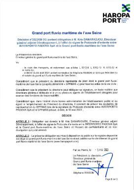 Décision n°2023/09 DG portant délégation à M. Kris DANARADJOU, Directeur général adjoint Développement, à l'effet de signer le Protocole d'entente entre INTERPORTO PADOVA SpA et le Grand port fluvio-maritime de l'axe Seine