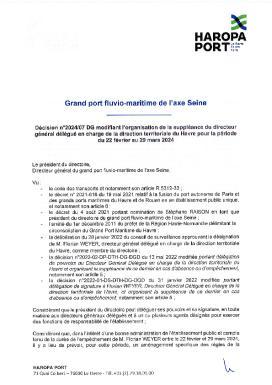 Décision n°2024/07 DG modifiant l’organisation de la suppléance du directeur général délégué en charge de la direction territoriale du Havre pour la période du 22 février au 29 mars 2024.