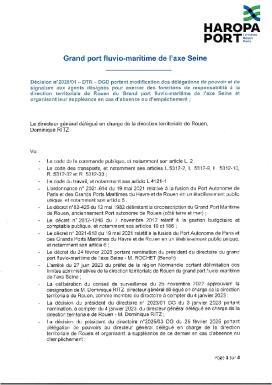 Décision n°2026/01 - DGD - DTR portant modification des délégations de pouvoir et de signature aux agents désignés pour exercer des fonctions de responsabilité à la direction territoriale de Rouen du Grand port fluvio-maritime de l'axe Seine et organisant leur suppléance en cas d'absence ou d'empêchement.