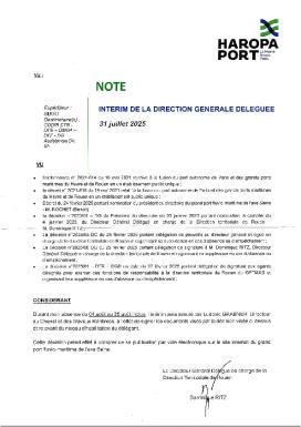 Intérim de la direction générale déléguée de la DT de Rouen du 4 au 25 août 2025
