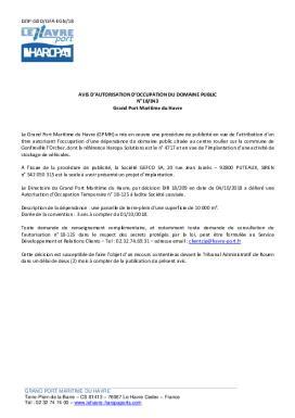 N°18-043- Avis d'autorisation d'occupation du domaine public - Grand Port Maritime du Havre