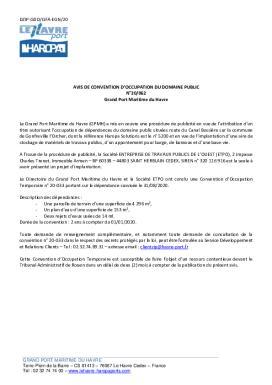 N°20-062 - Avis d'autorisation d'occupation du domaine public - Grand Port Maritime du Havre