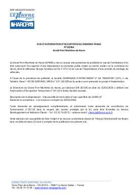 N°20-066 - Avis d'autorisation d'occupation du domaine public - Grand Port Maritime du Havre