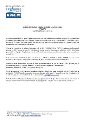 N°20-078 - Avis d'autorisation d'occupation du domaine public - Grand Port Maritime du Havre
