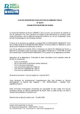 N°20/010 - Avis de convention doccupation du domaine public - GRAND PORT MARITIME DE ROUEN
